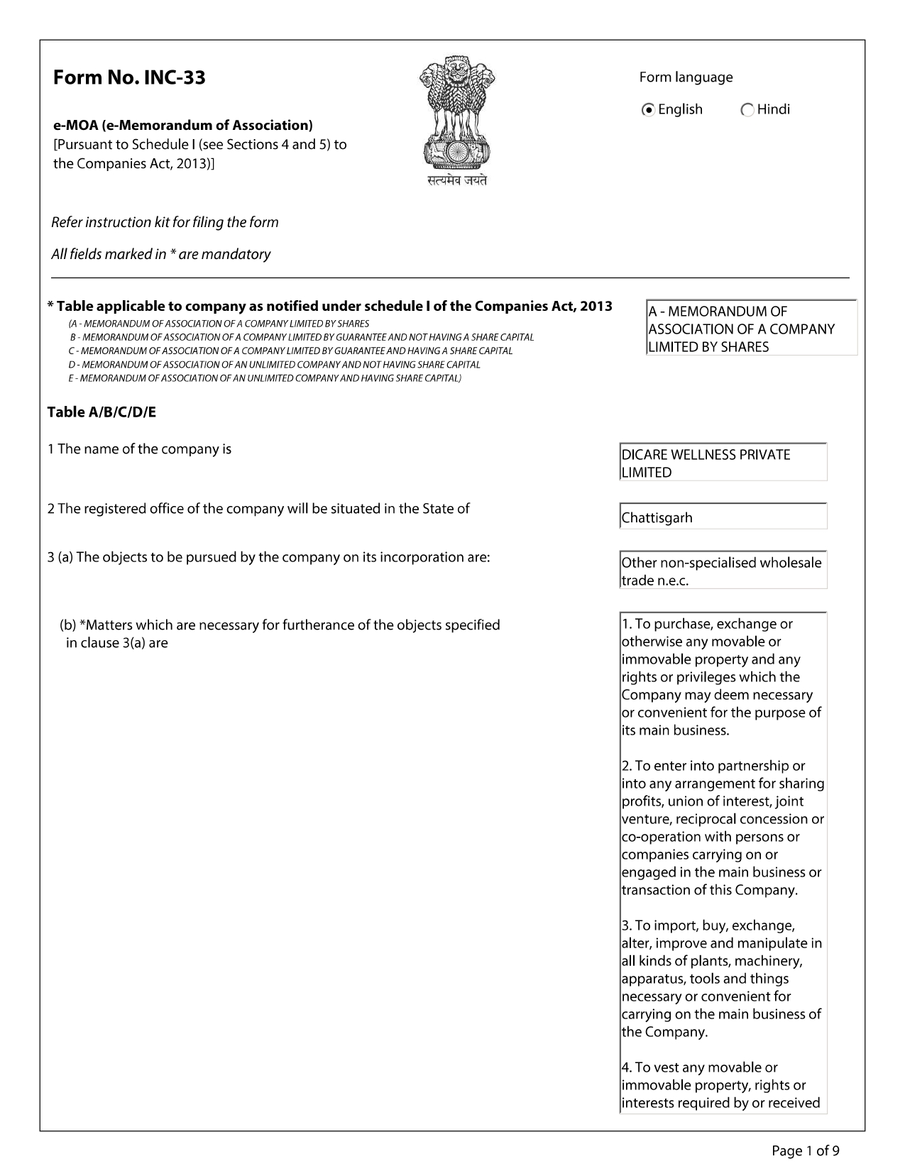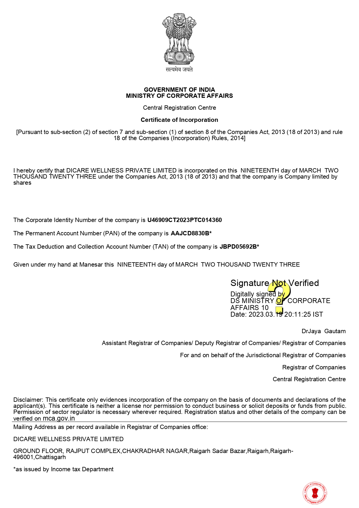 Certificate Of Incorporation