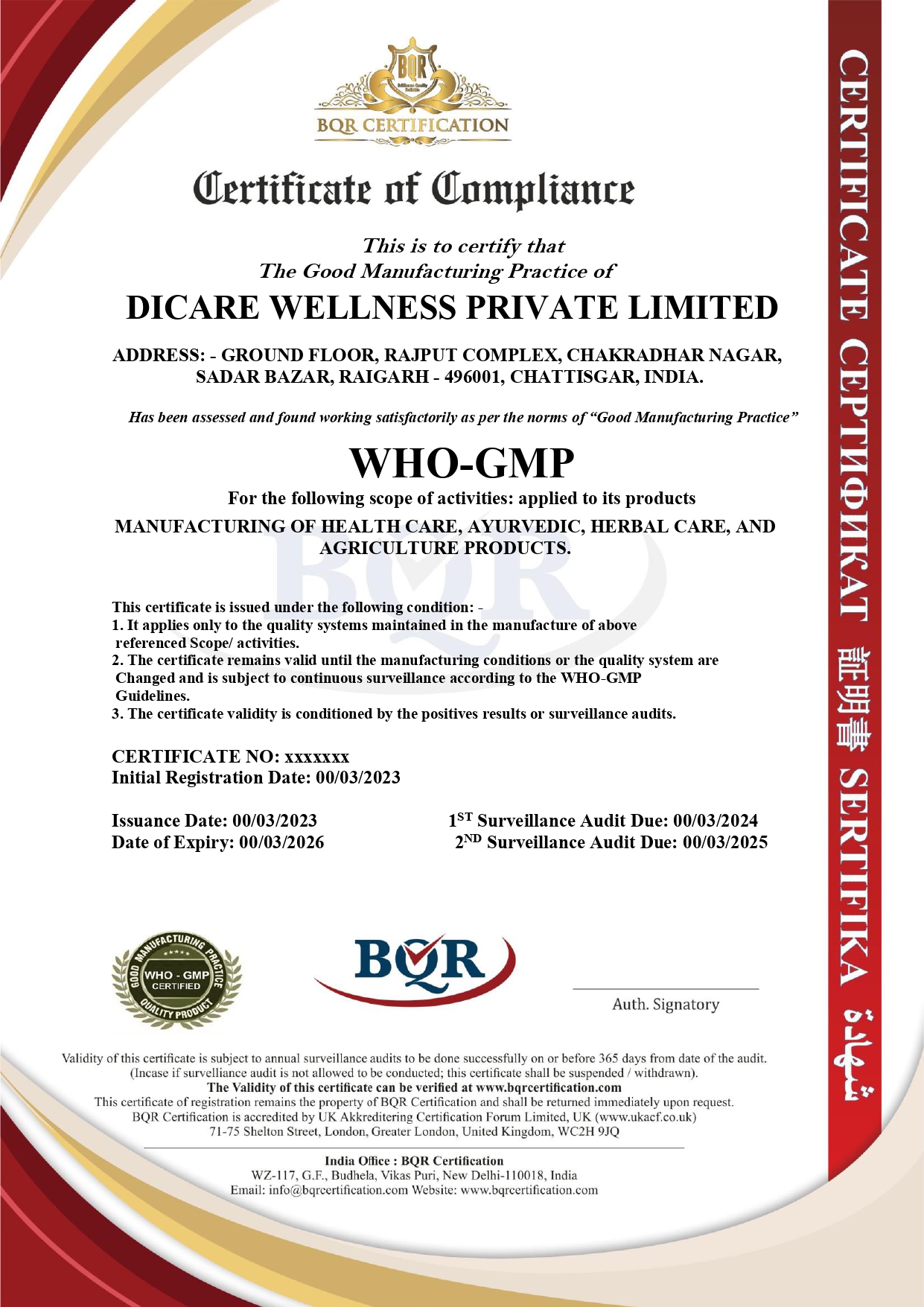 Certificate of WHO-GMP