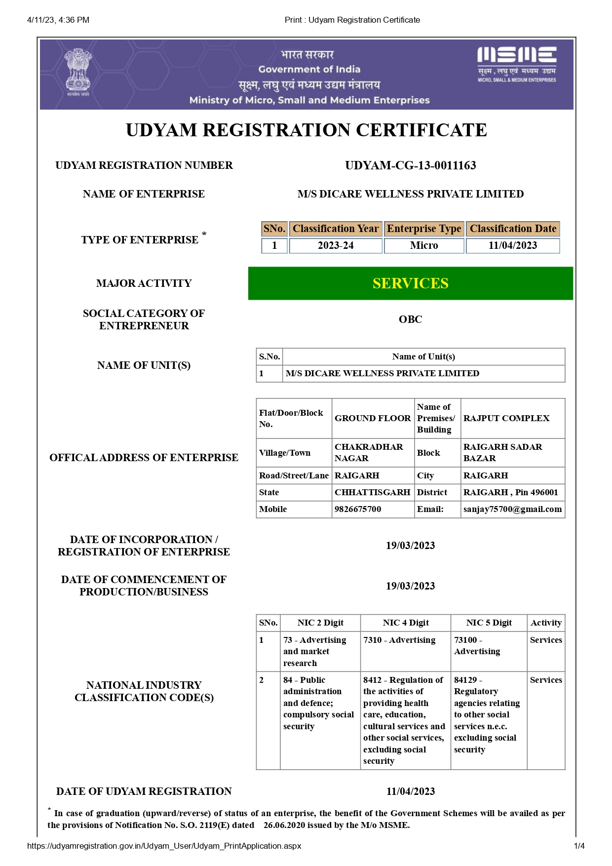 Udhyam Registration Certificate